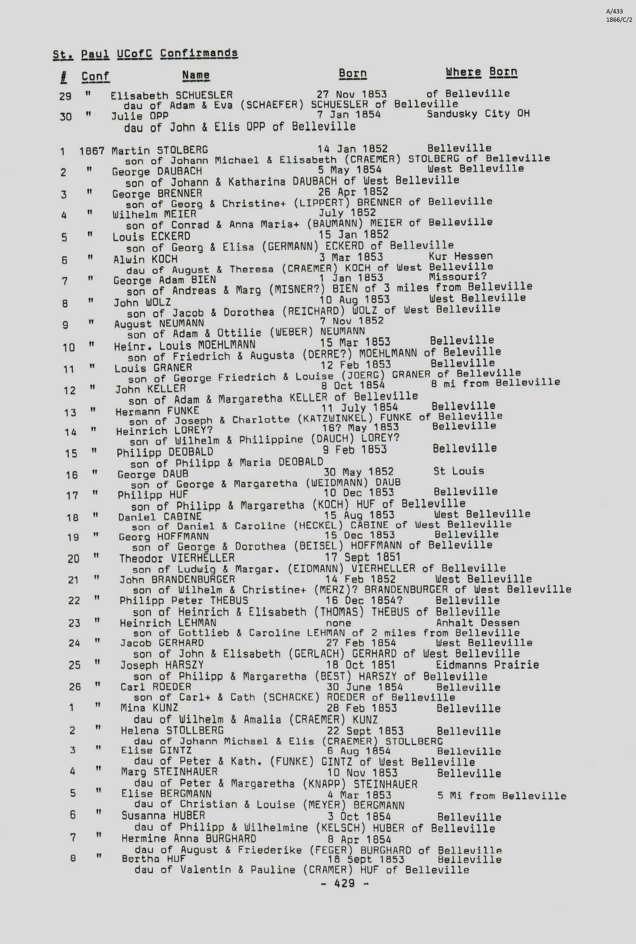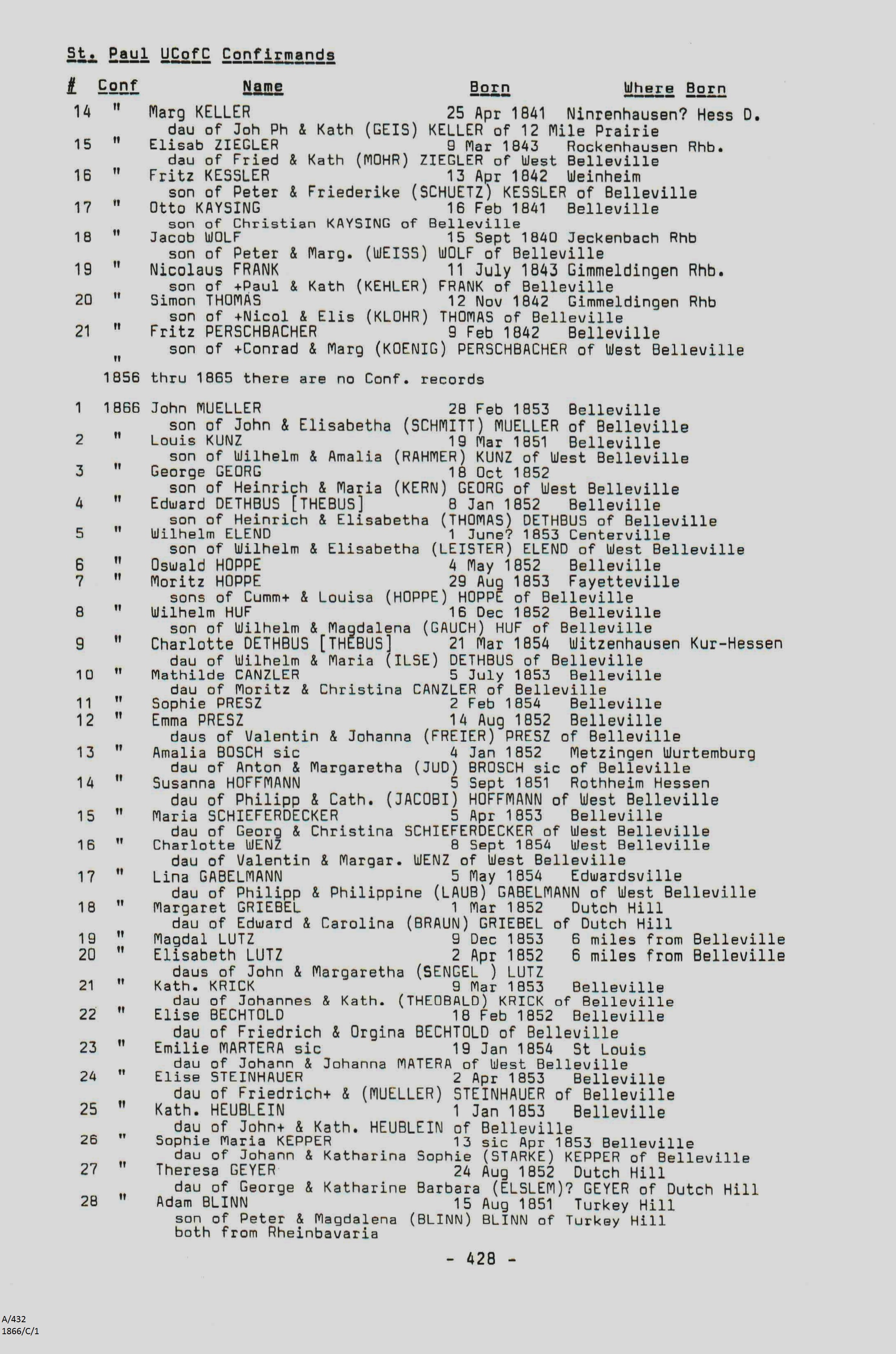 Confirmation Class of 1866
