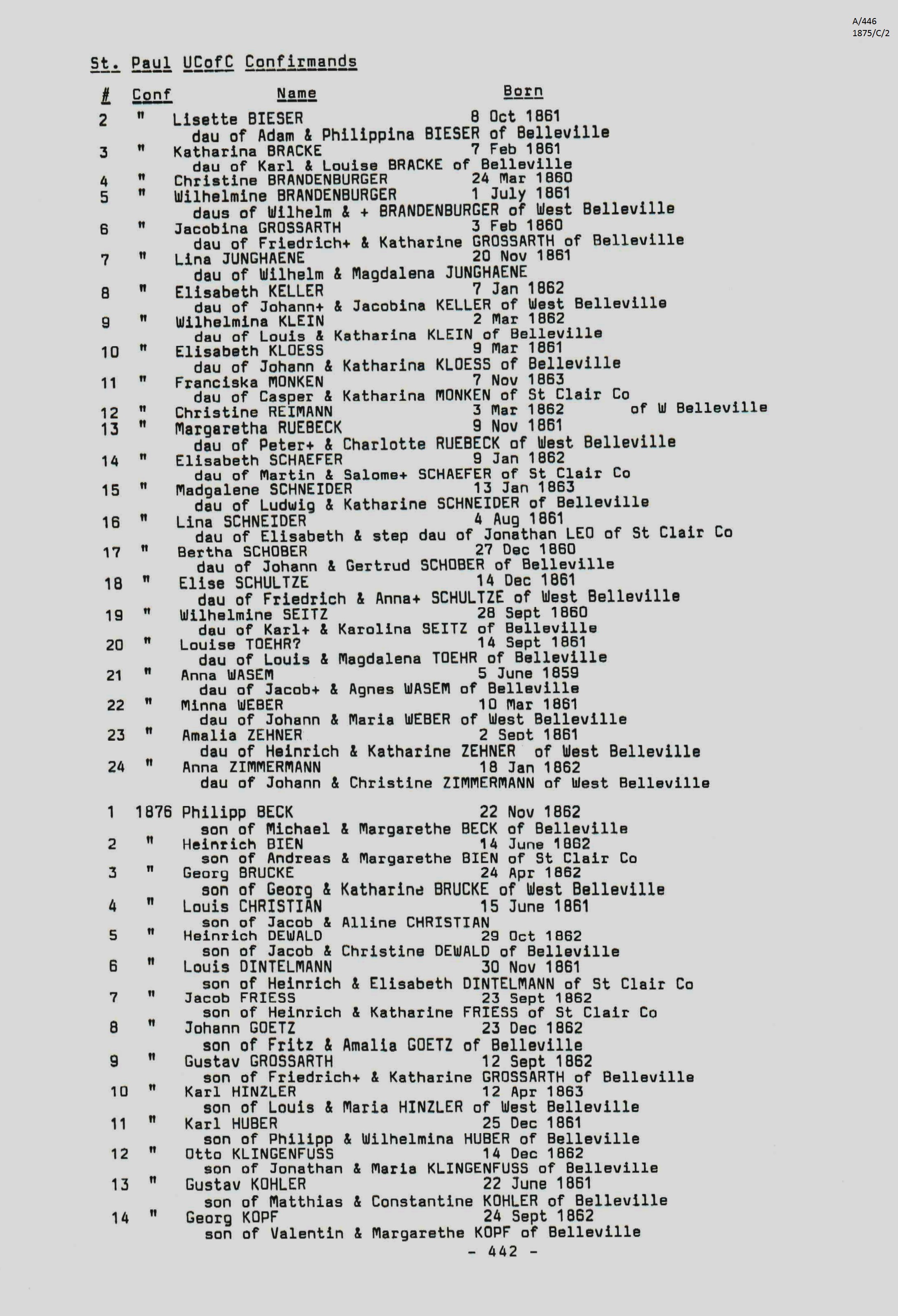 Confirmation Class of 1876
