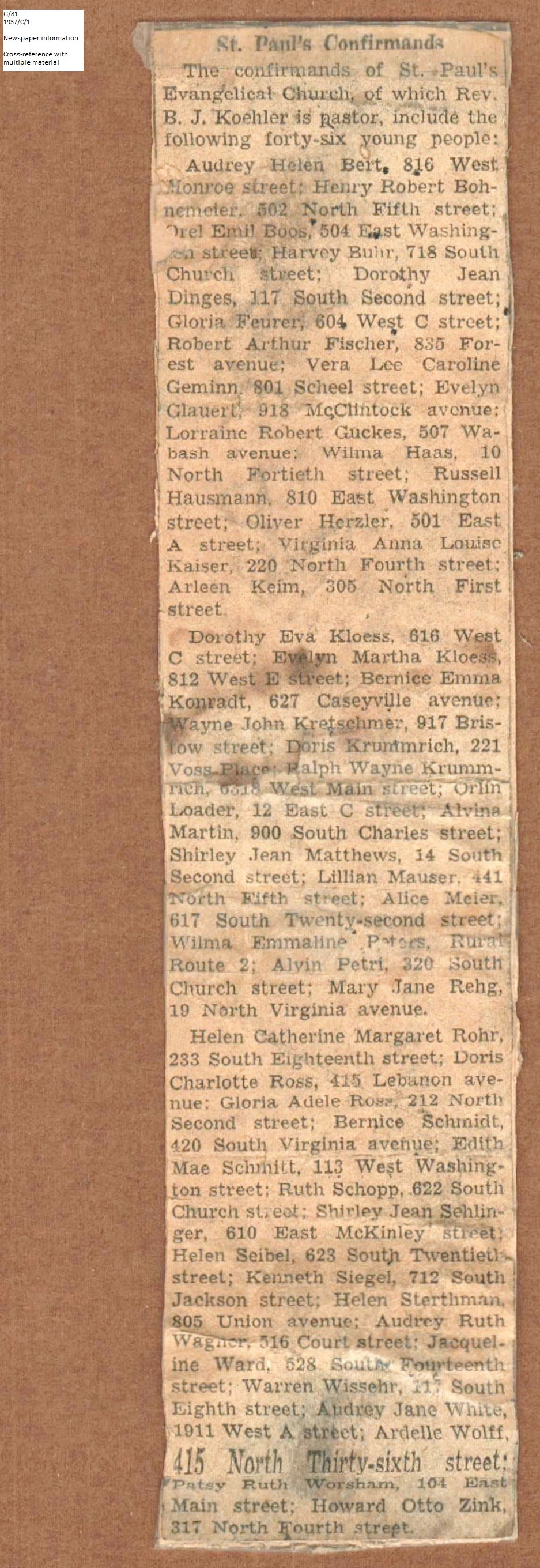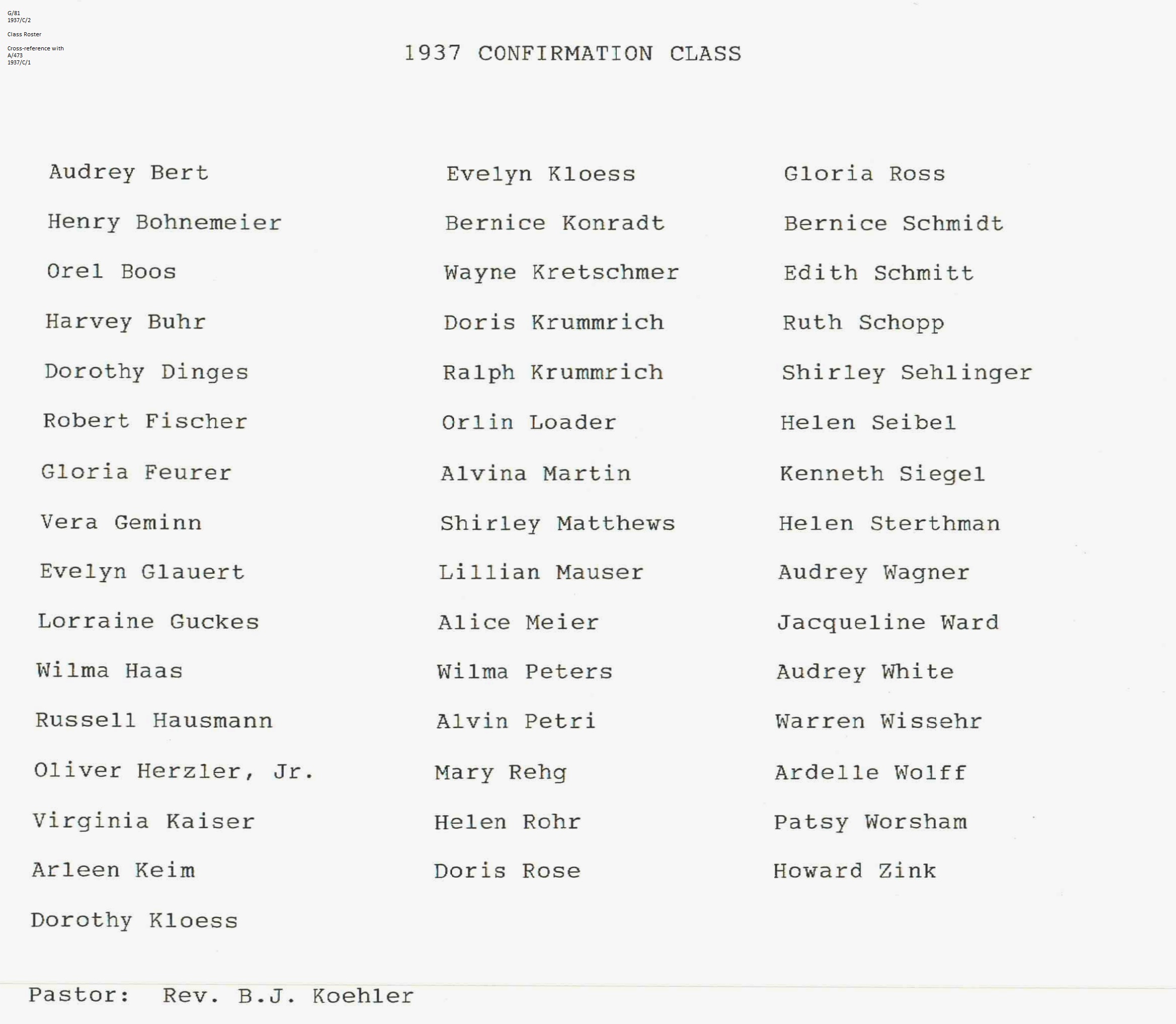 Confirmation Class of 1937
