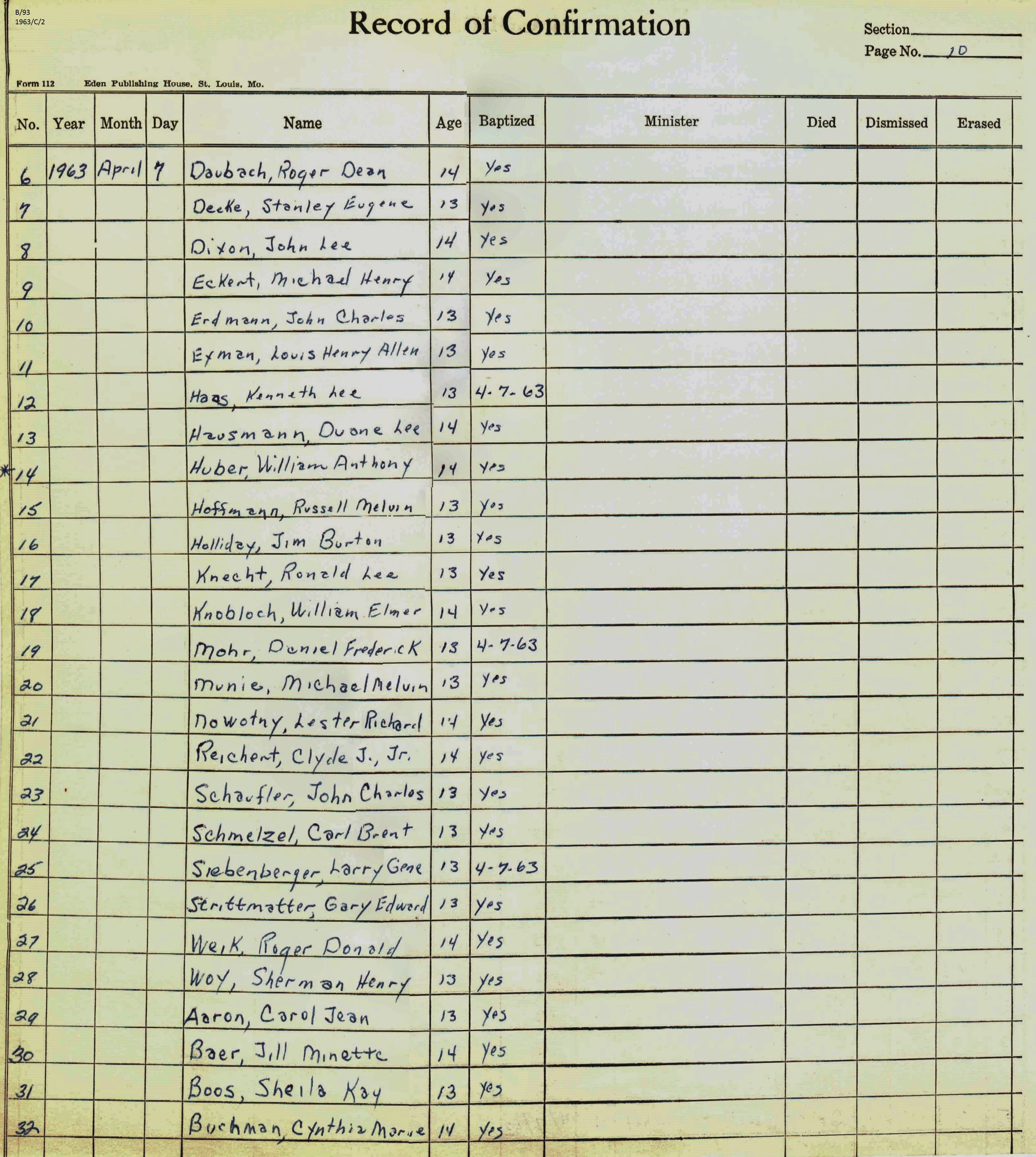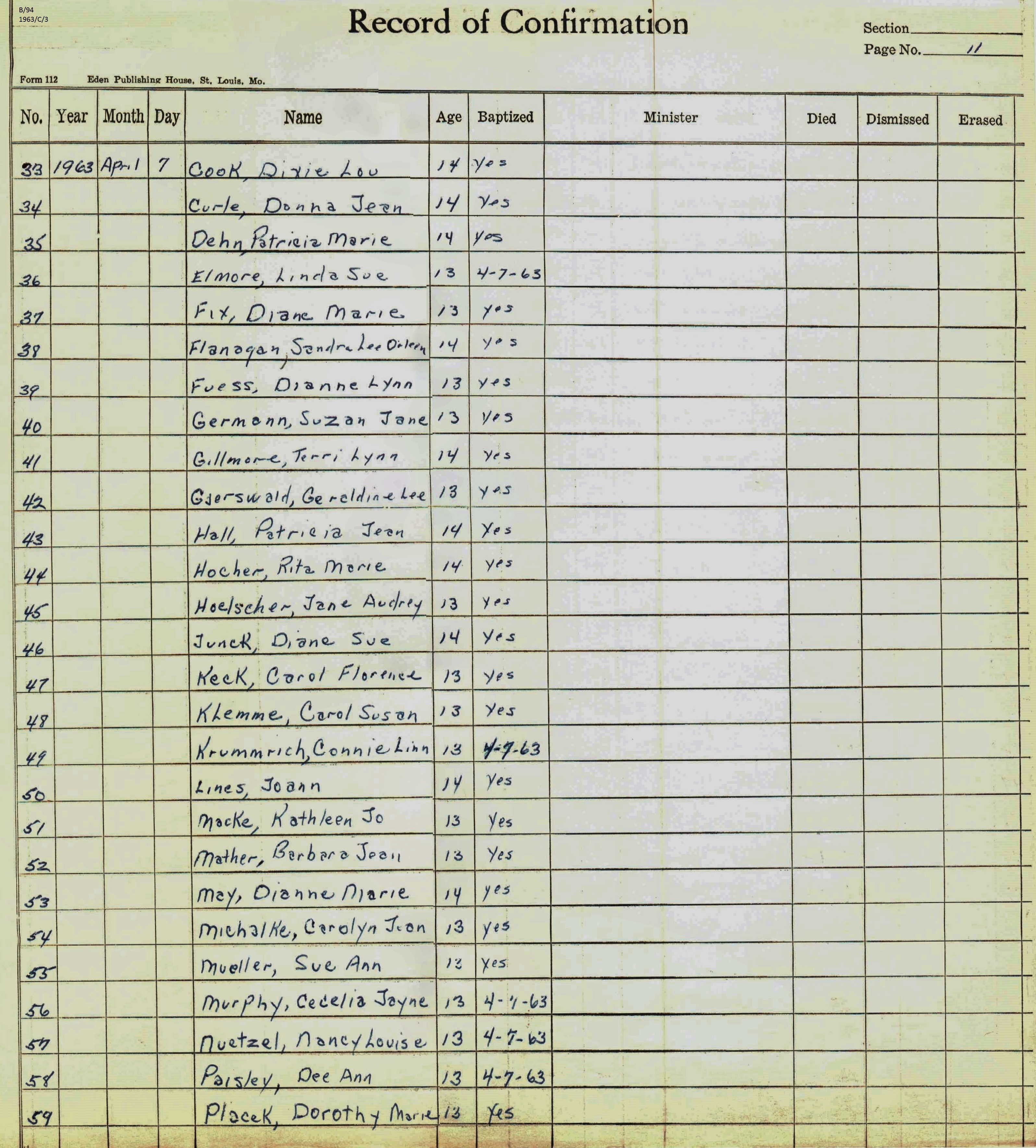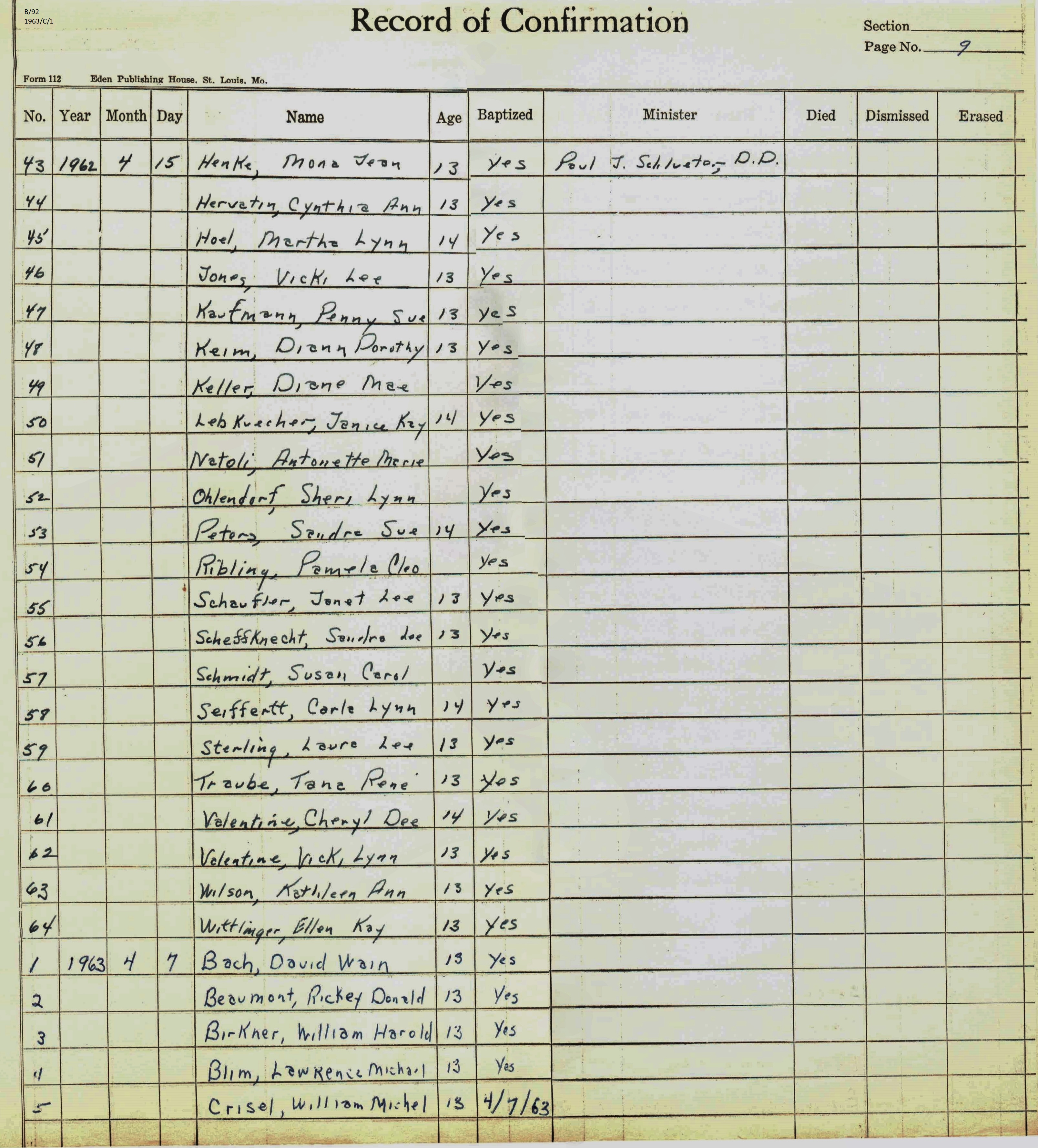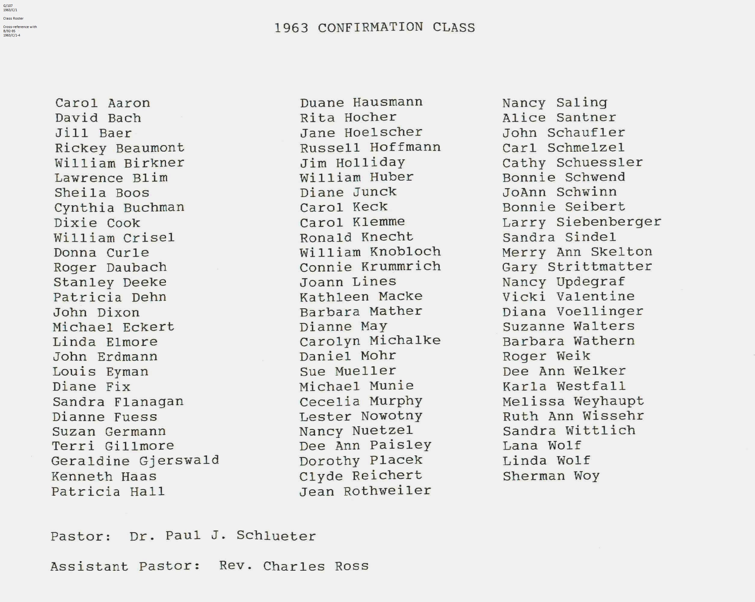 Confirmation Class of 1963
