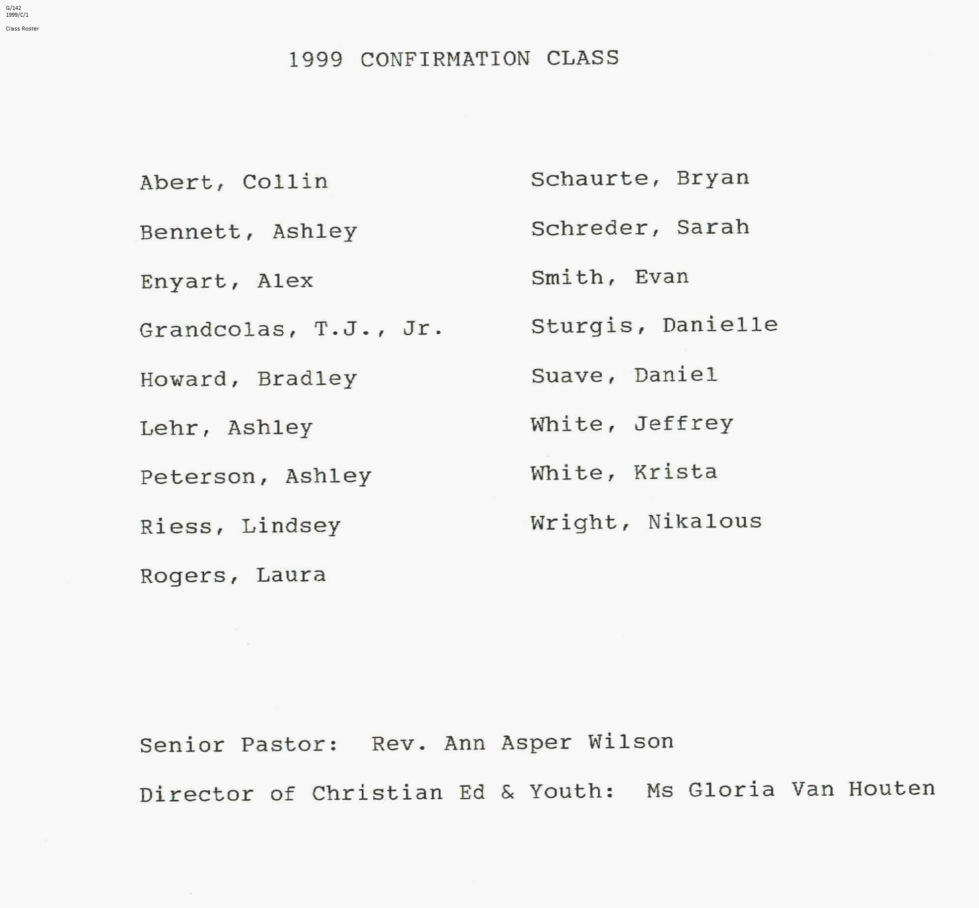 Confirmation Class of 1999