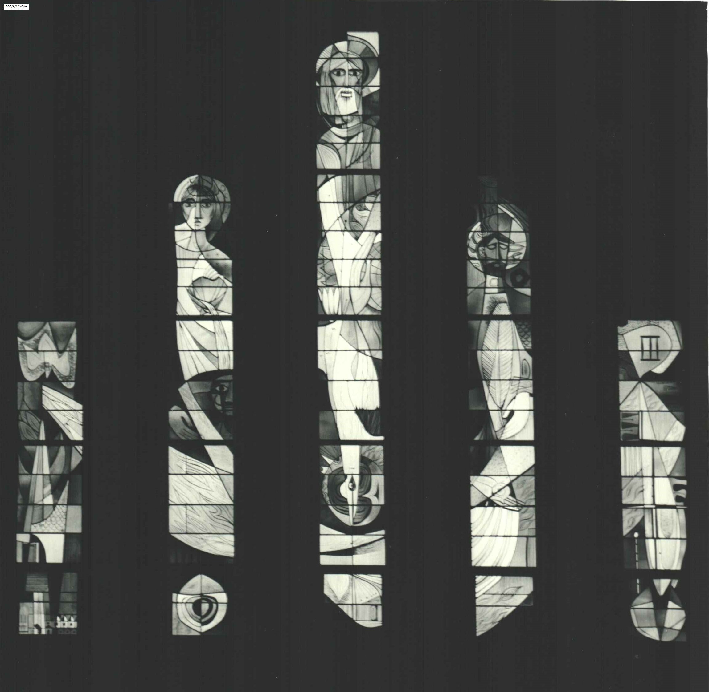 Installed in October of 1968, this group of windows was the last to be placed in the Sanctuary. The center window symbolizes our namesake, St. Paul, an apostle and missionary. The window to its right represents Stephen, the first Christian martyr stoned to death in early Christian times. To the left of St. Paul is the window representing Phillip, one of Christ's apostles who baptized an Ethiopian eunuch and instructed him in the meaning of the Christian faith. The window on the extreme right symbolized the Resurrection. The Roman numeral III at the panel's top reminds us that Christ rose on the third day. The descending dove is on the extreme left window, meaning the Holy Spirit enters the world's life.