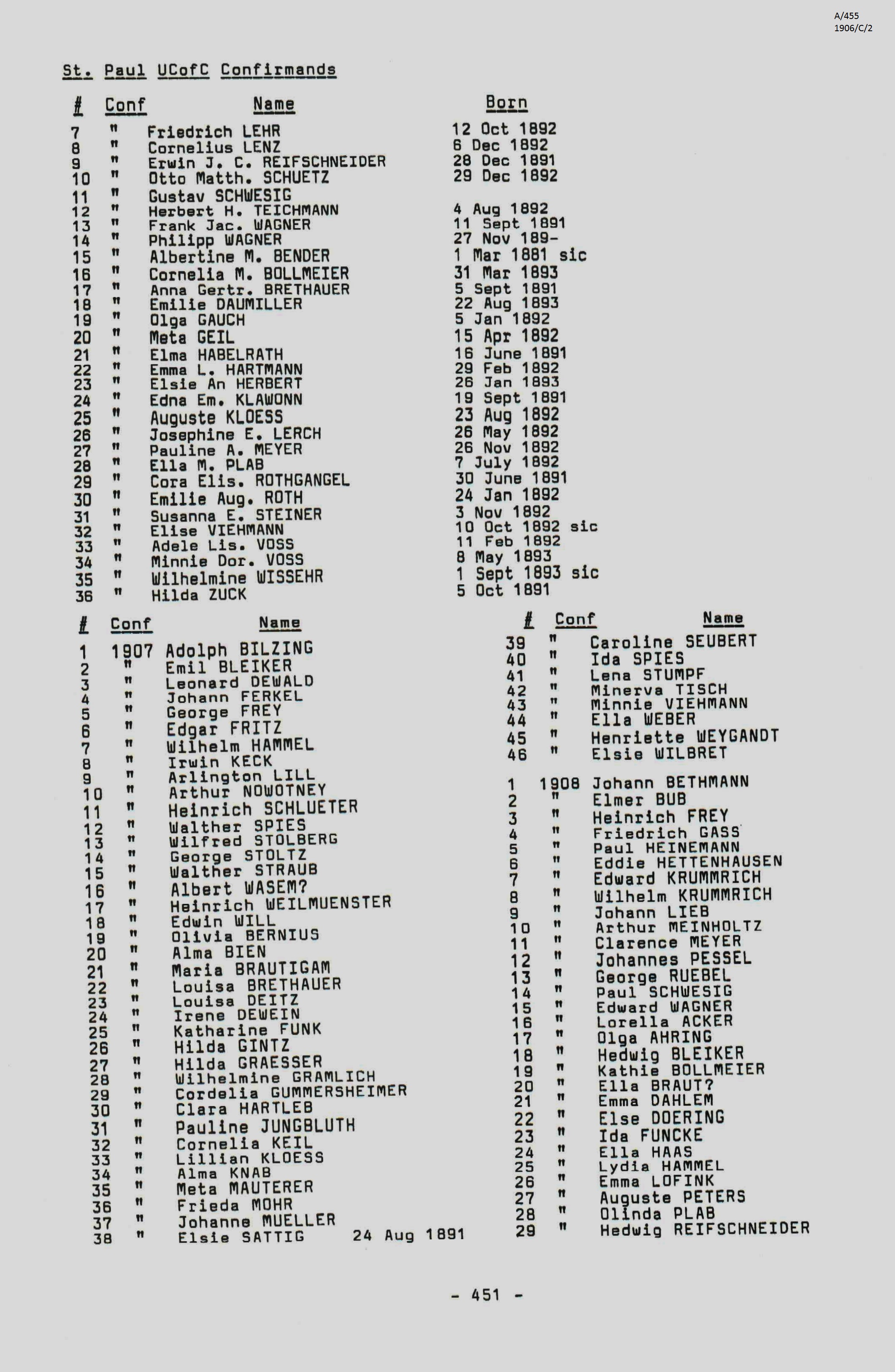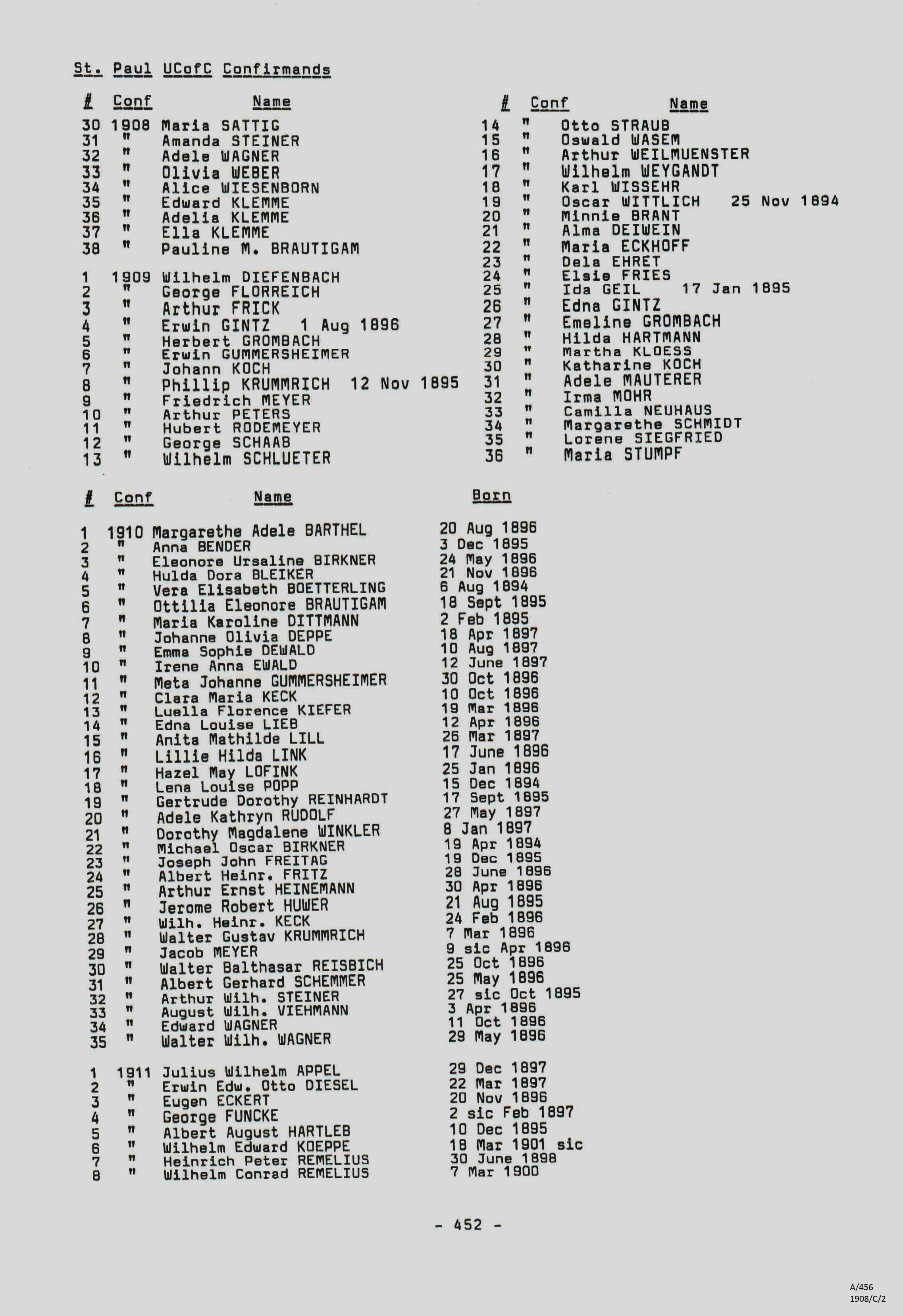 Confirmation Class of 1908