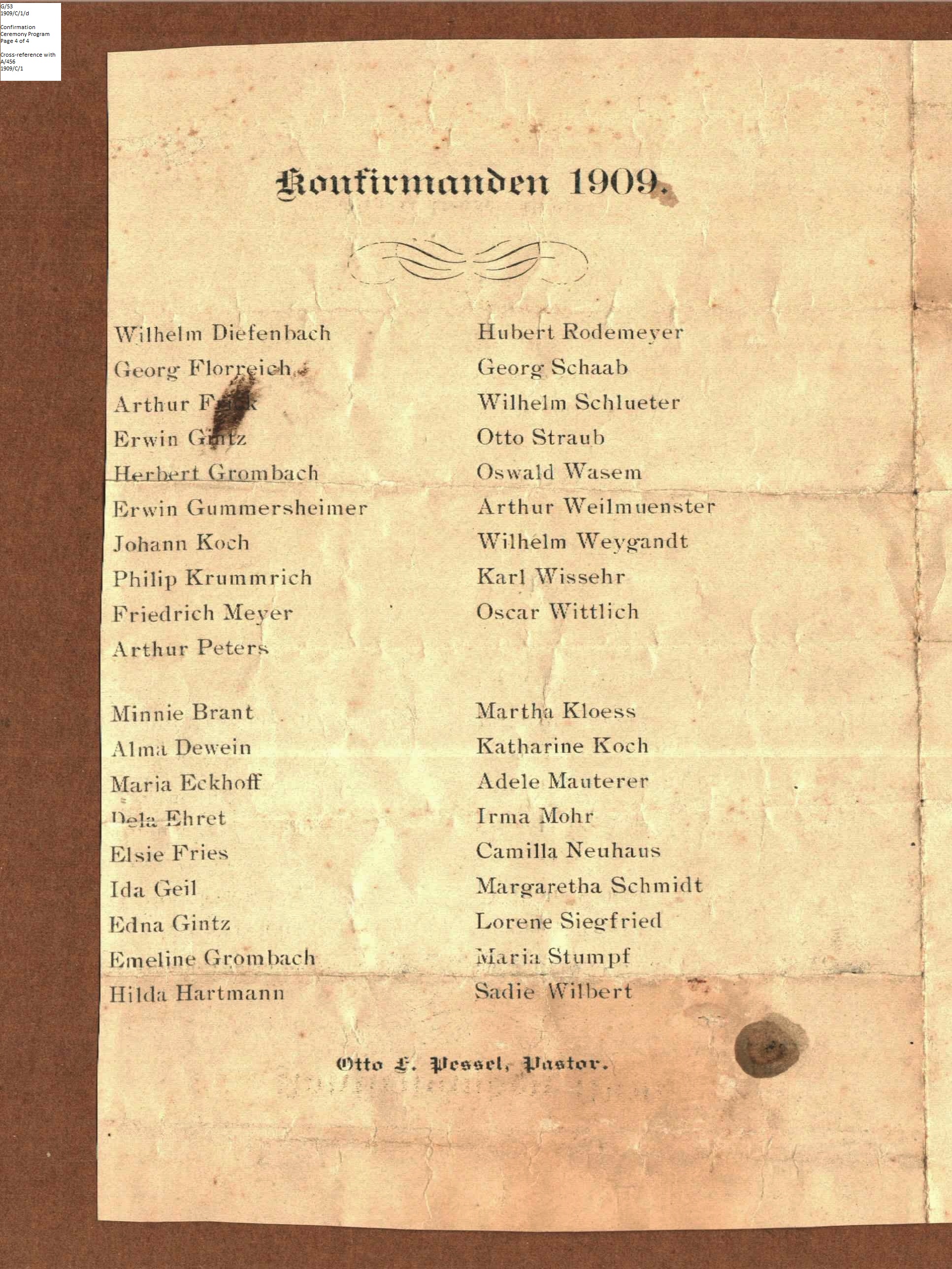 Confirmation Class of 1909