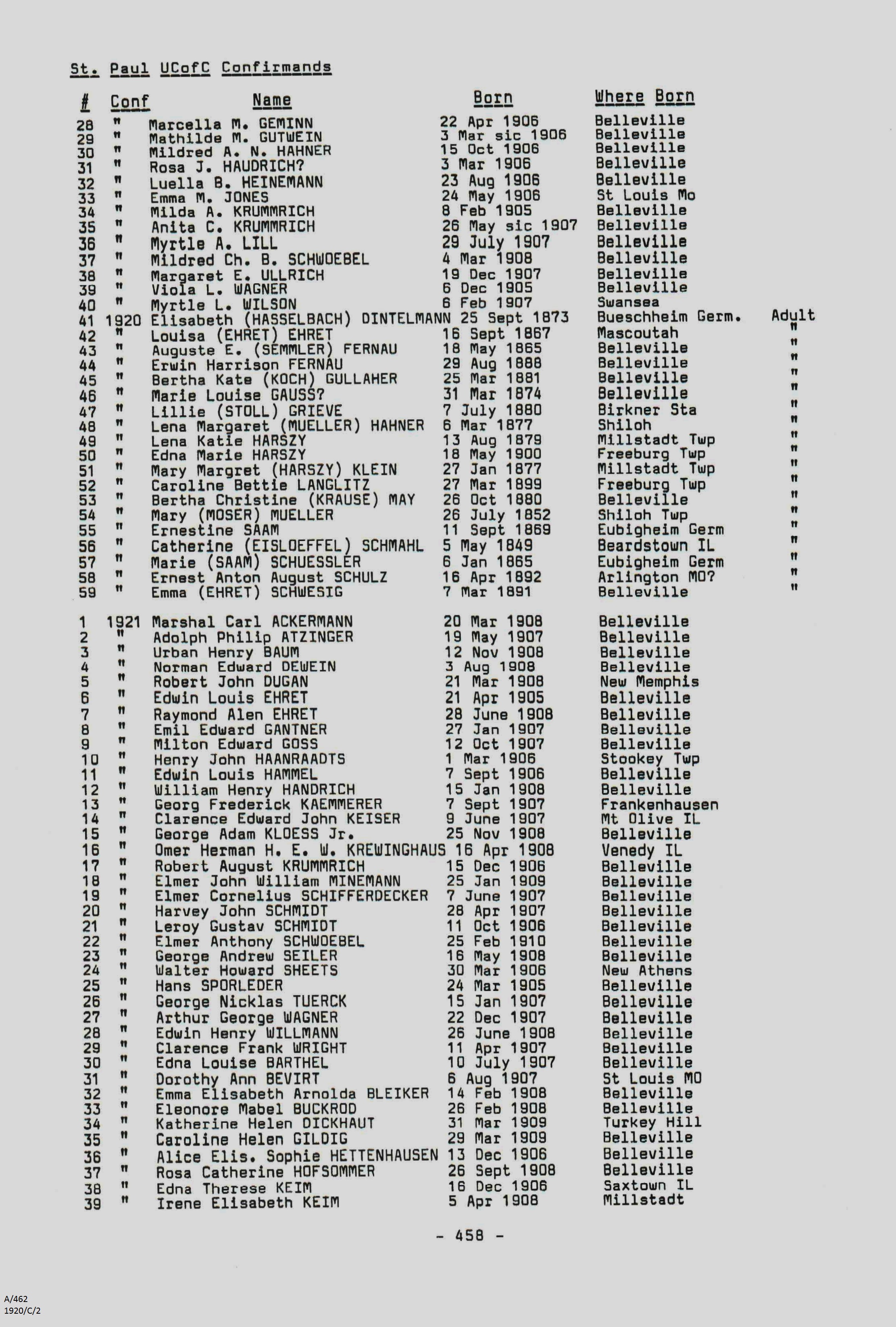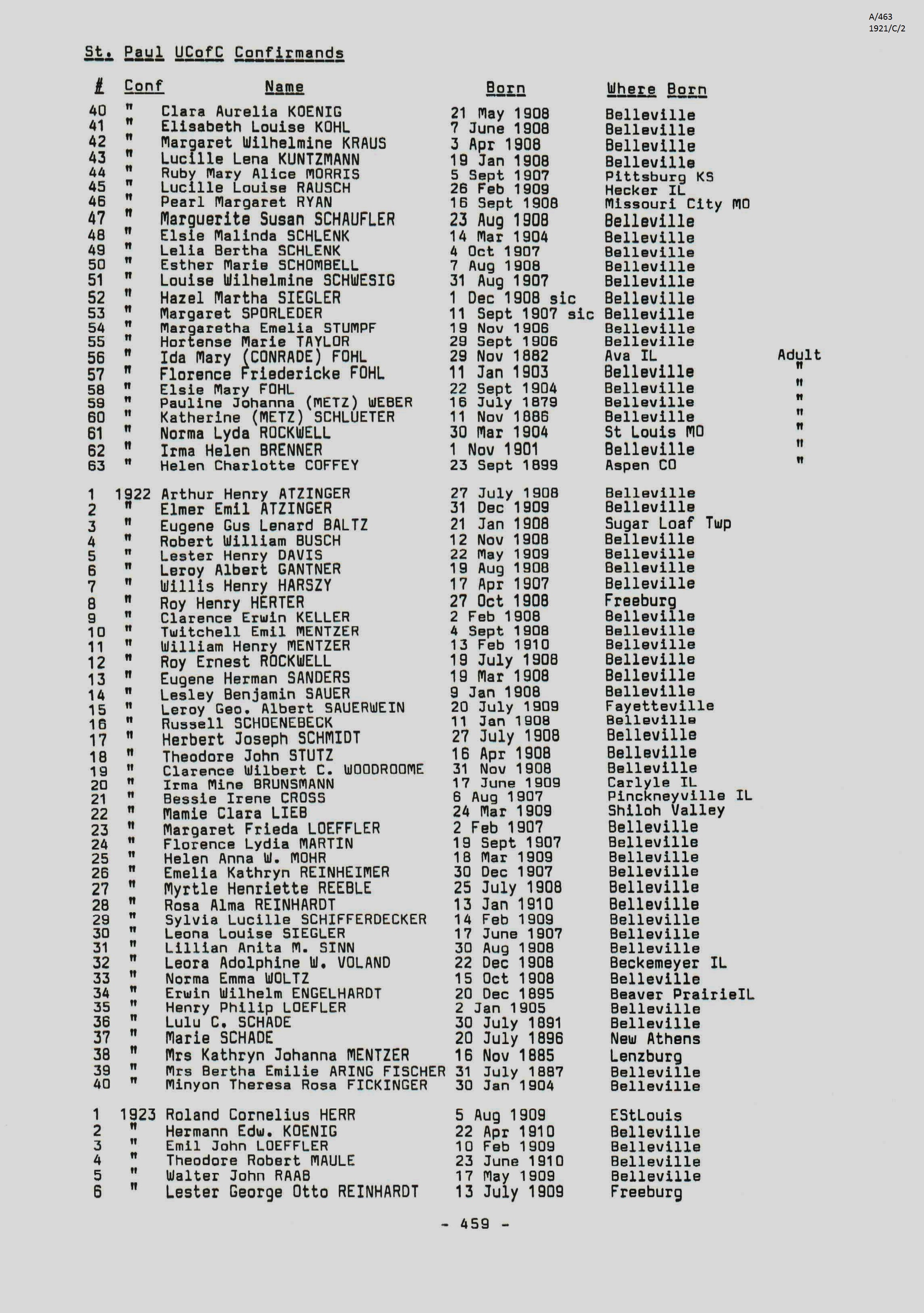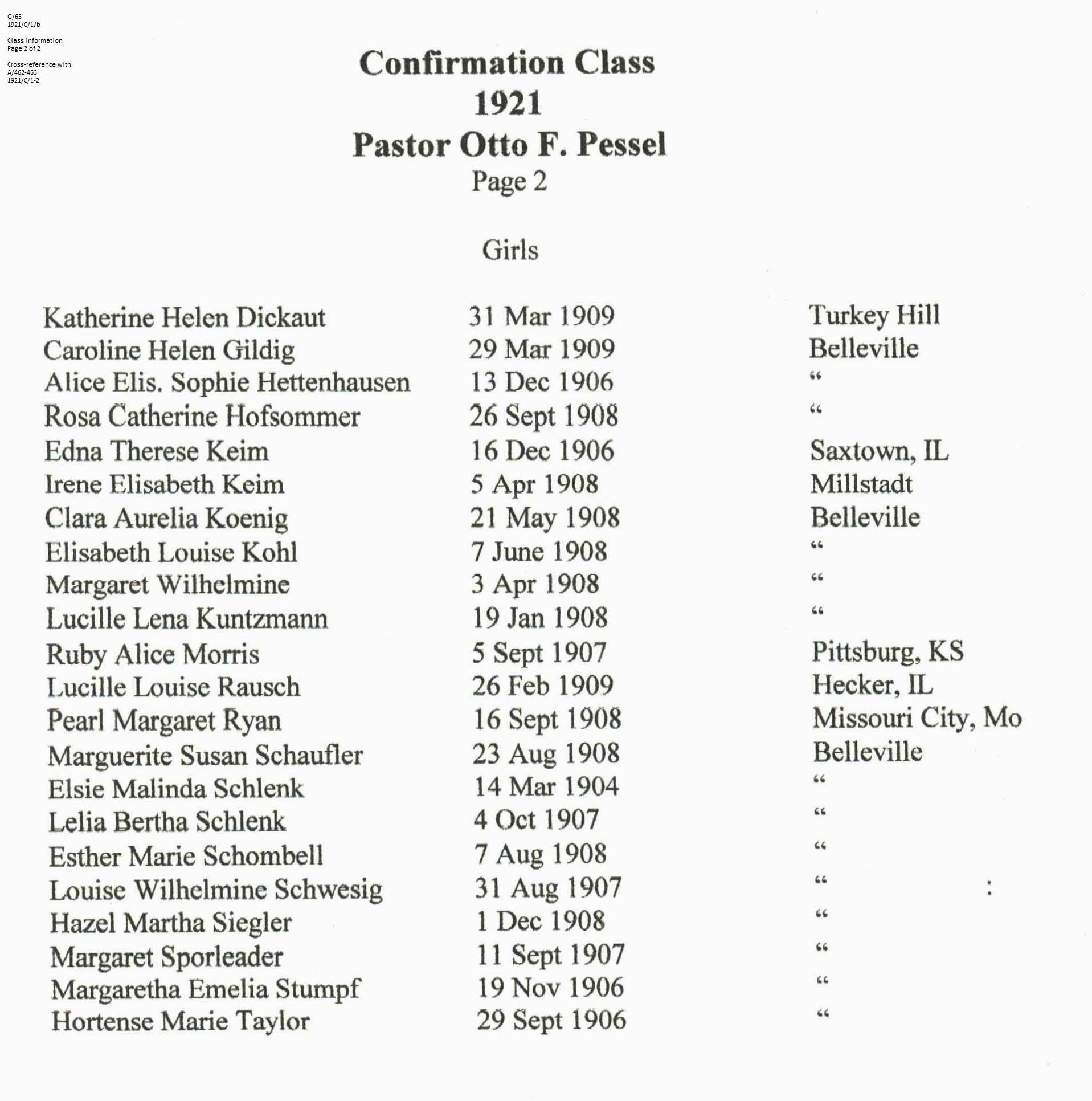 Confirmation Class of 1921