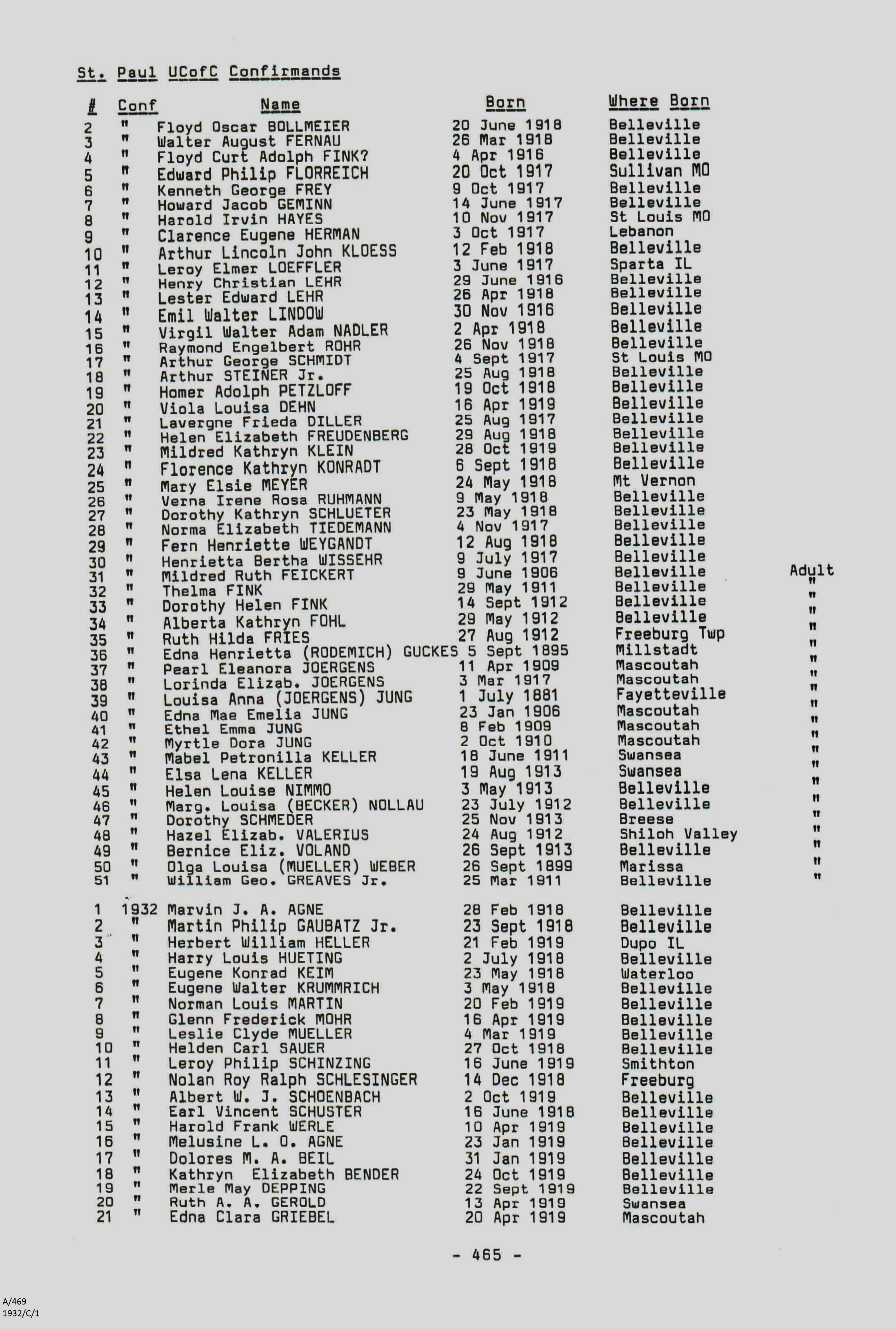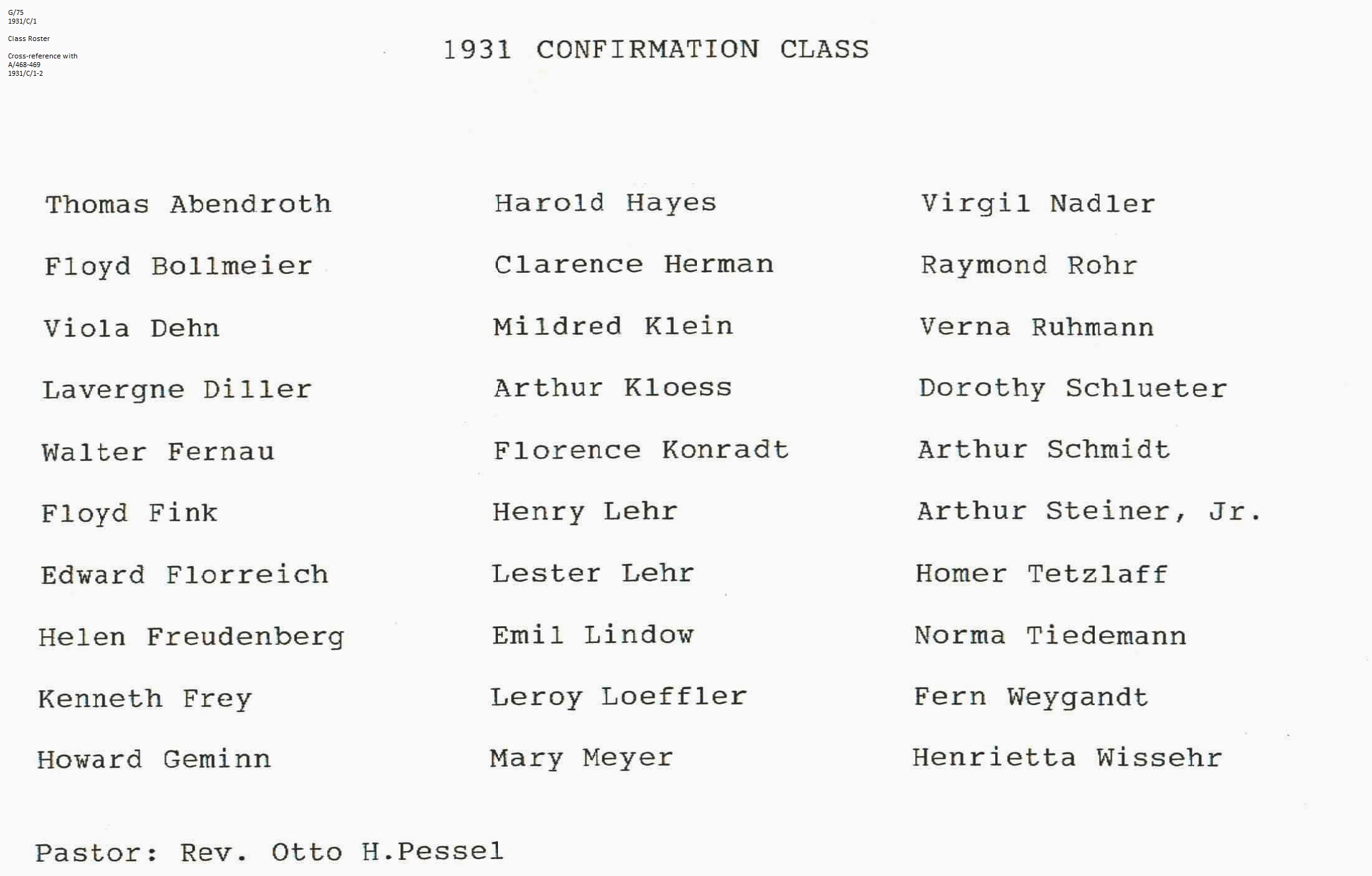 Confirmation Class of 1931