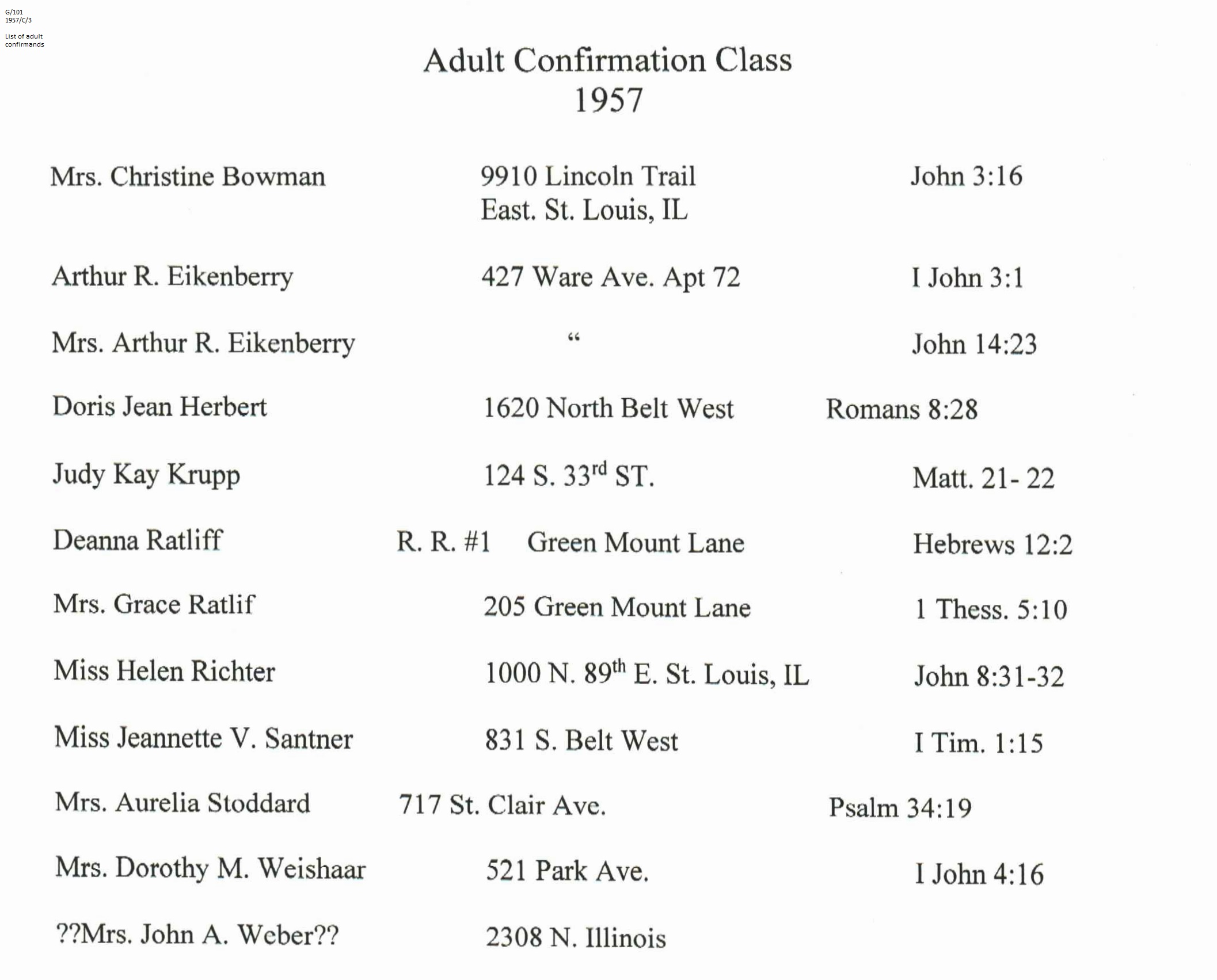 Confirmation Class of 1957