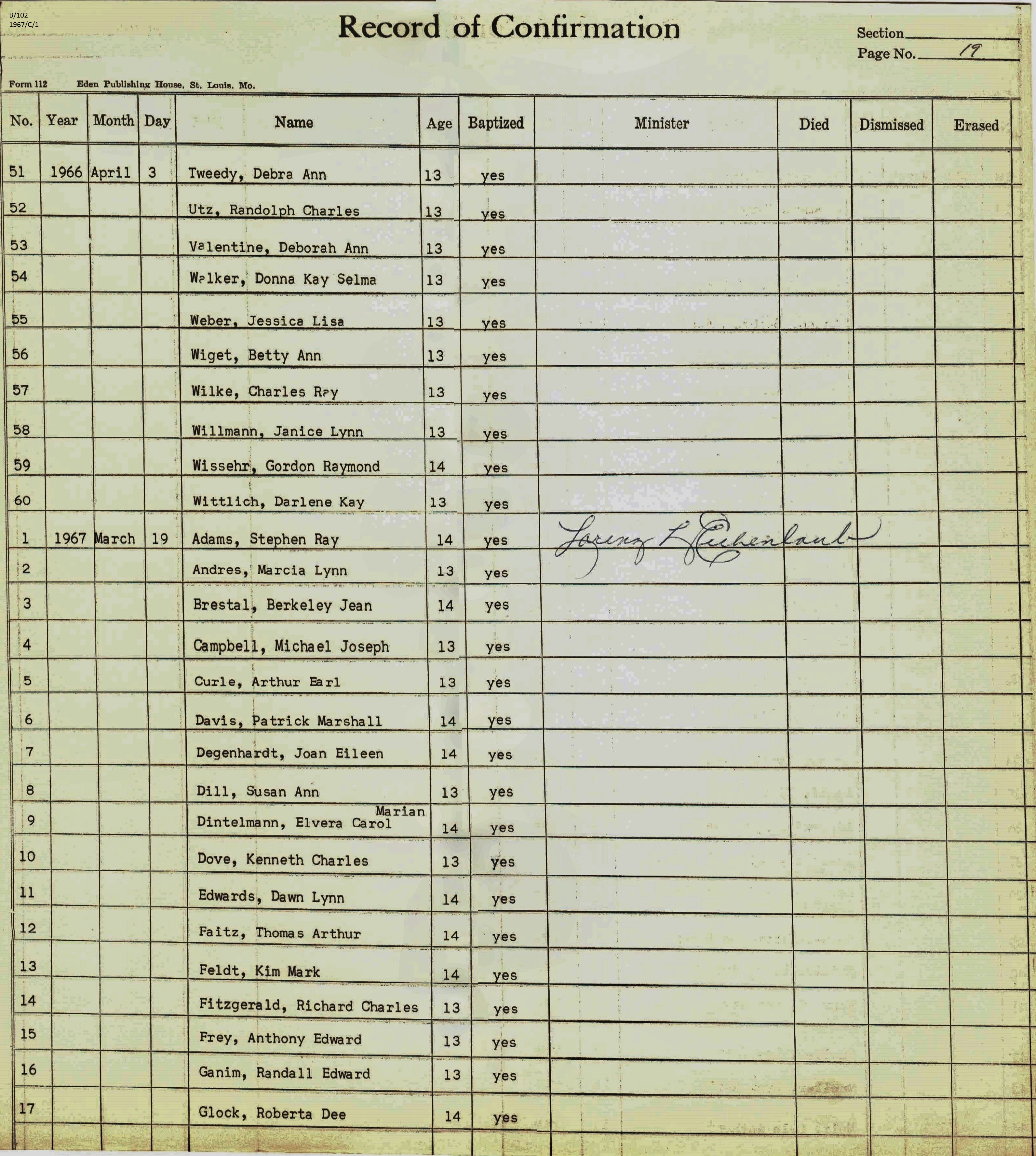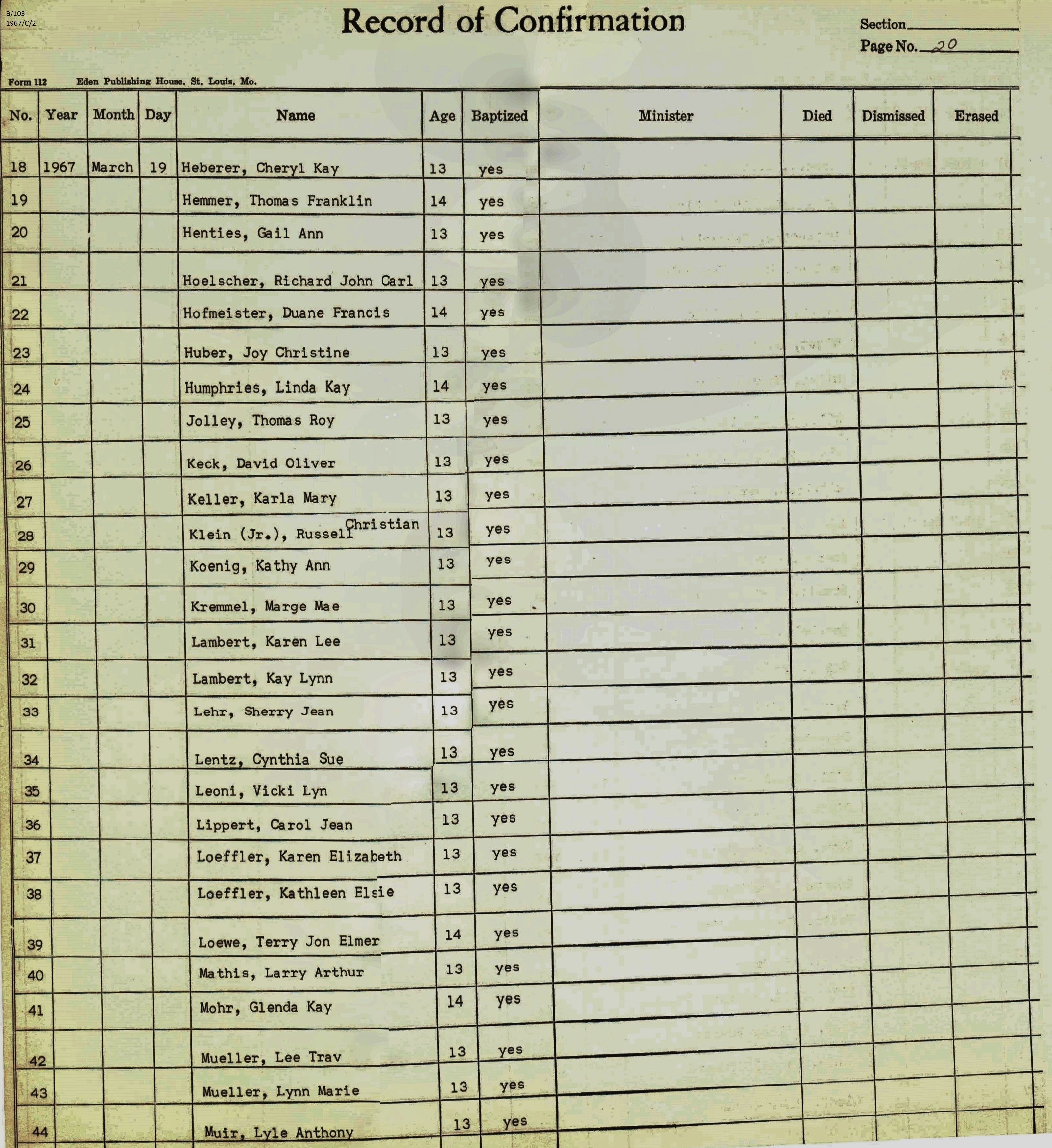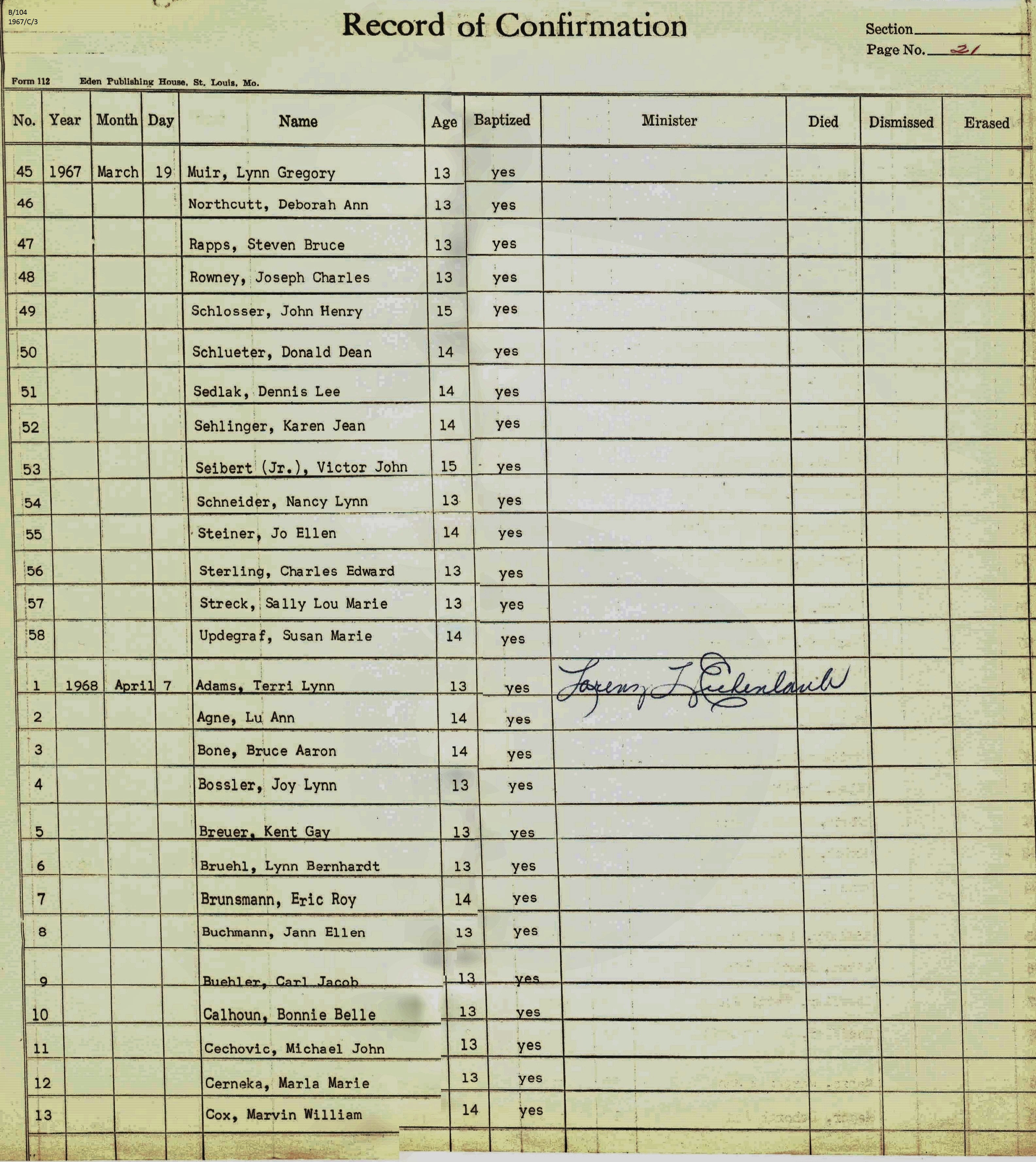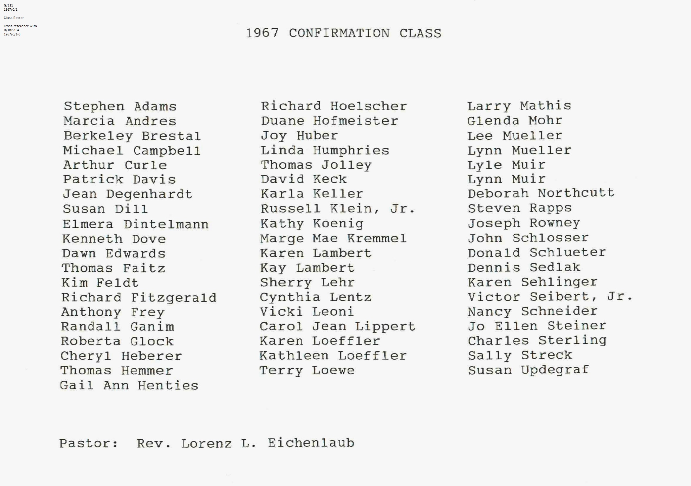Confirmation Class of 1967