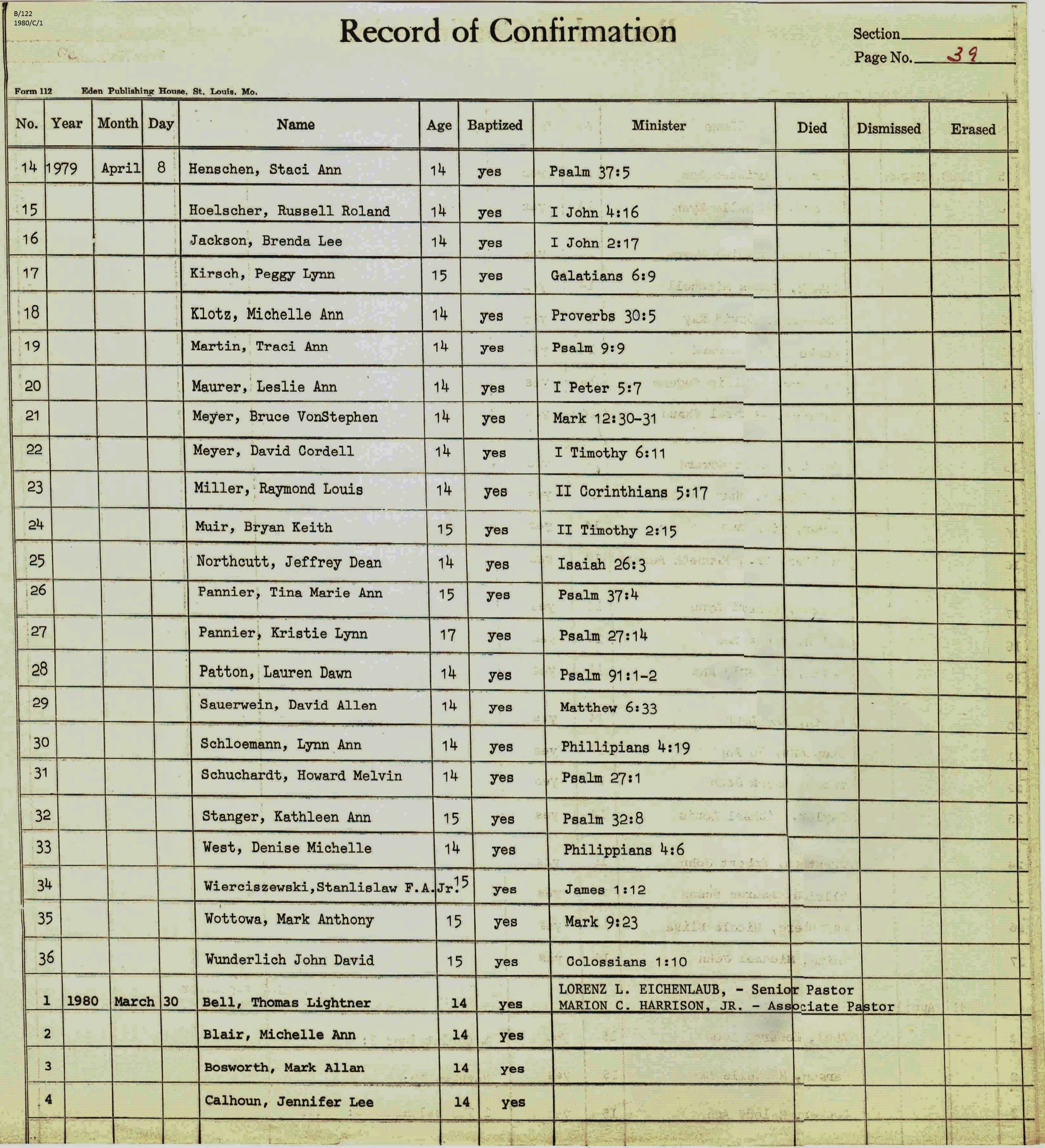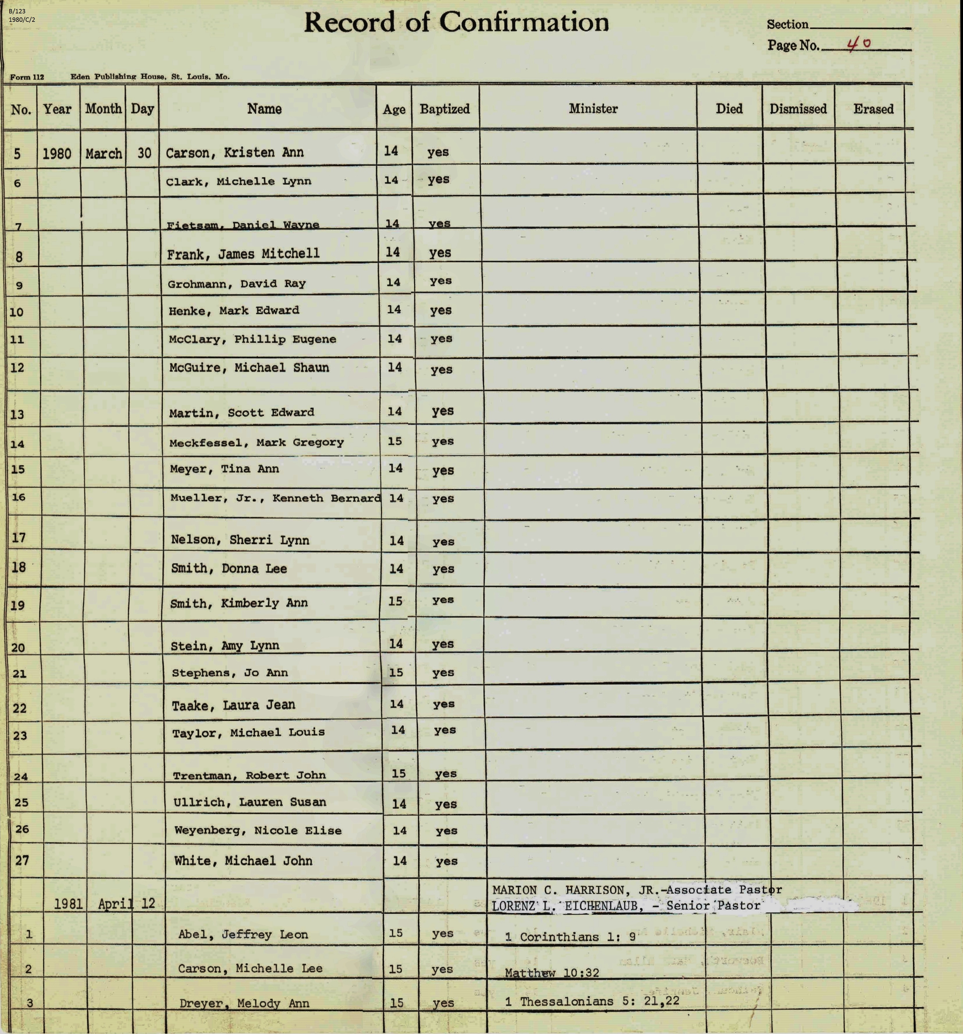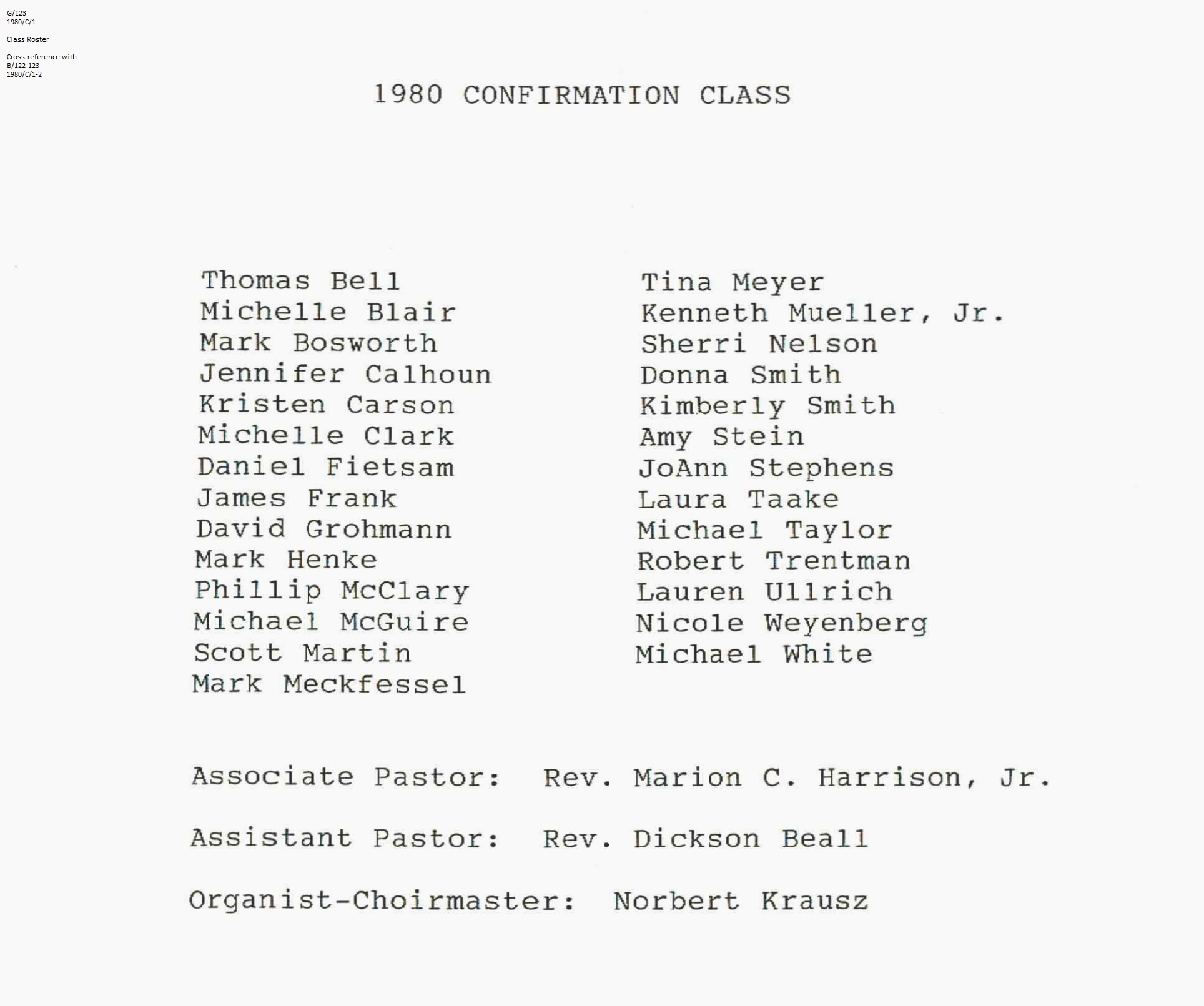 Confirmation Class of 1980