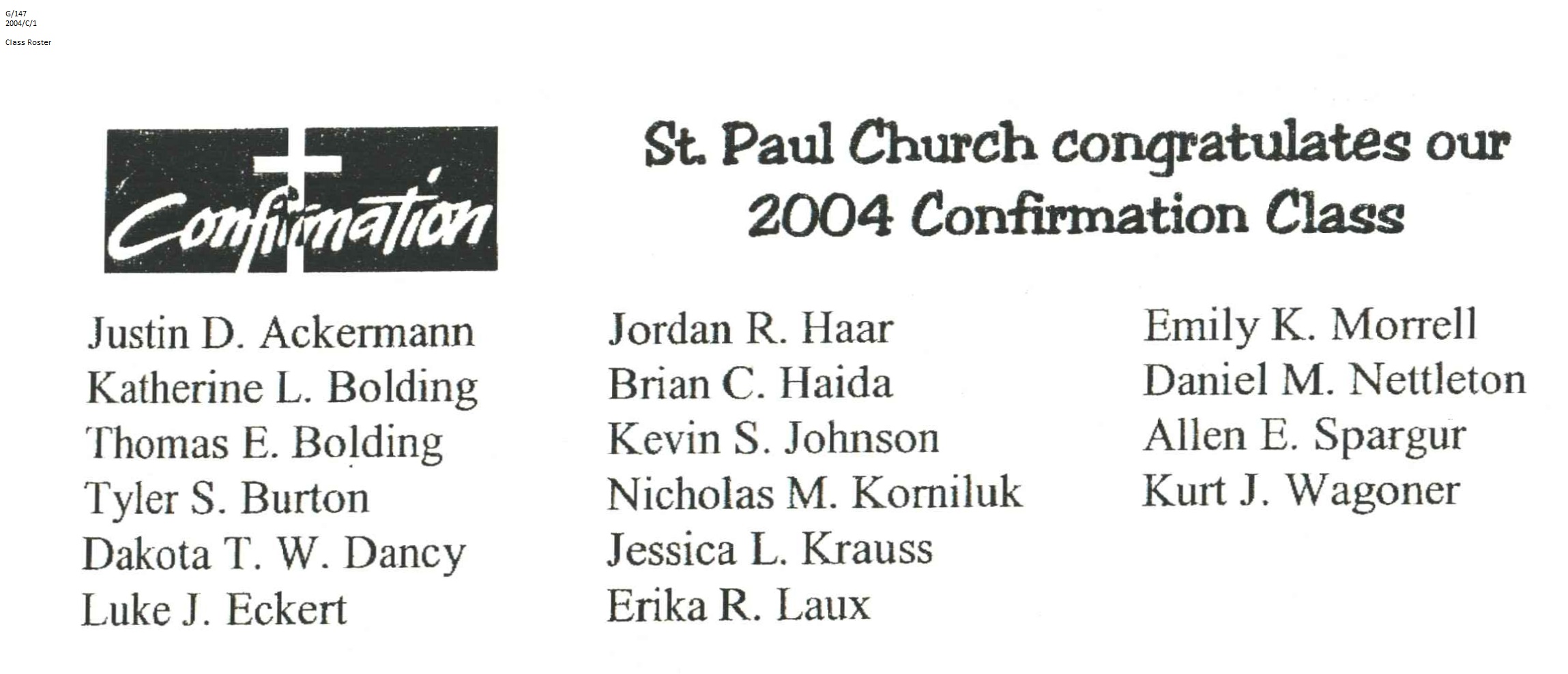 Confirmation Class of 2004