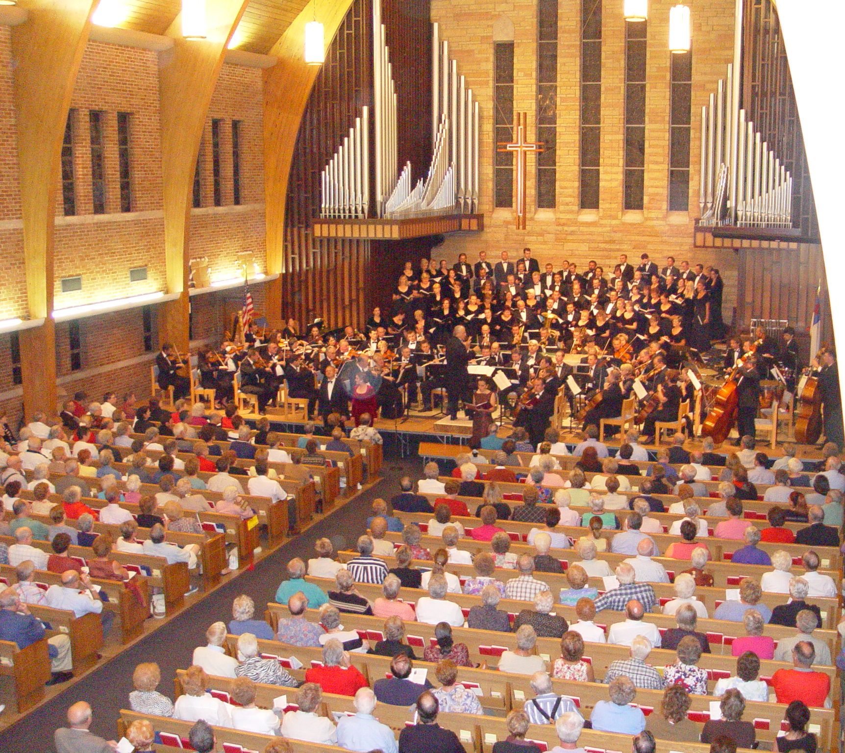 In 1996 and 1998, the Kyiv Symphonic Choir & Orchestra performed at St. Paul United Church of Christ. The St. Paul Fine Arts committee sponsored the events. Below are audio files from the concert, plus a gallery of photos. Both concerts are filled with the "love of music." Pay particular attention to the end of the 1996 concert with the singing of "God Bless America," followed by the closing blessing by their Pastor with a message of peace and love.